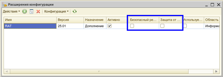 Настройка свойств расширения: После добавления или обновления, выберите расширение "RAT" в списке и убедитесь, что сняты следующие галочки: