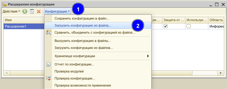 Существует несколько способов установить (или обновить) расширение в вашу информационную базу 1С.
